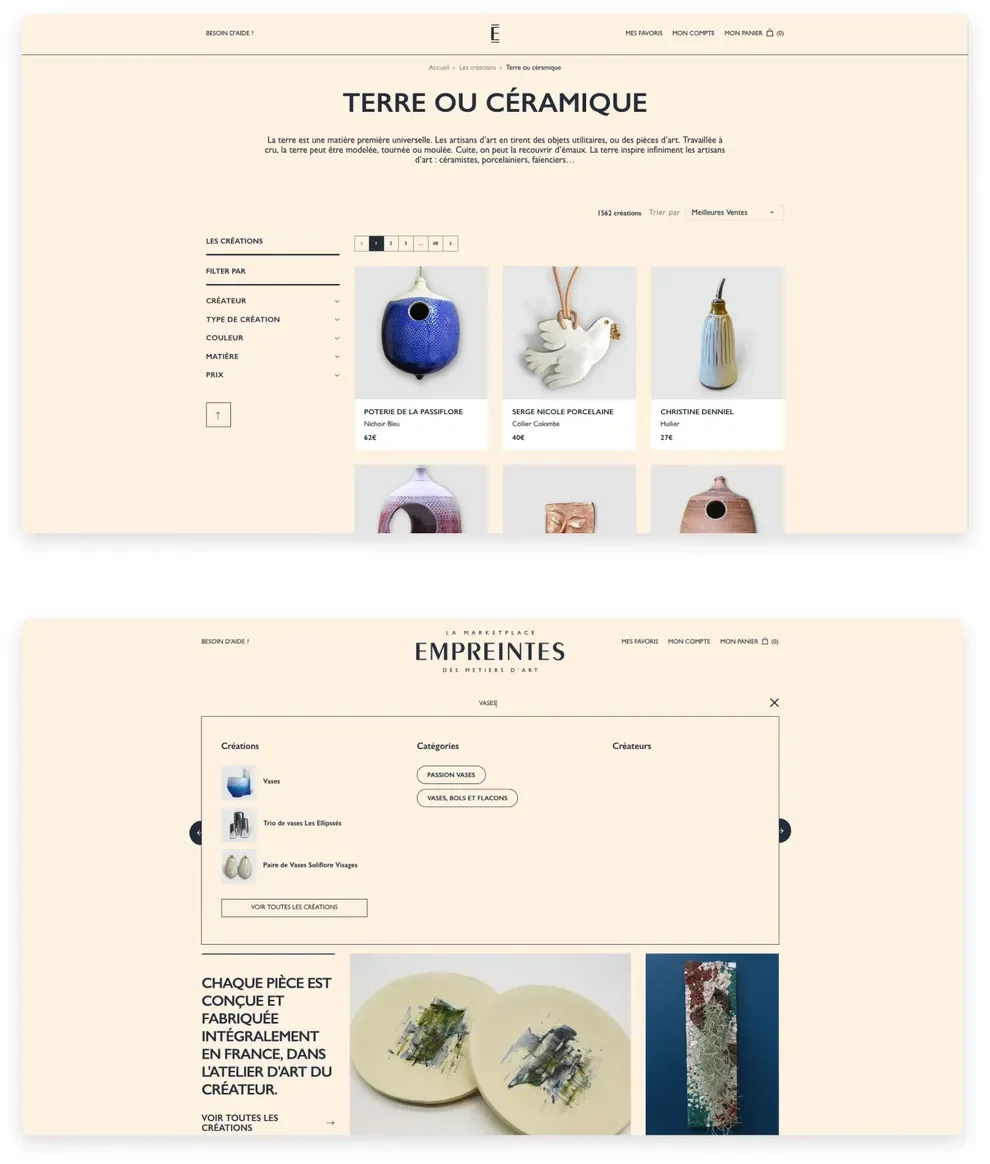 En plus de sa boutique physique dans le Haut-Marais, Empreintes souhaitait développer une marketplace, rendant accessible à tous des objets produits par des artisans d’art français.