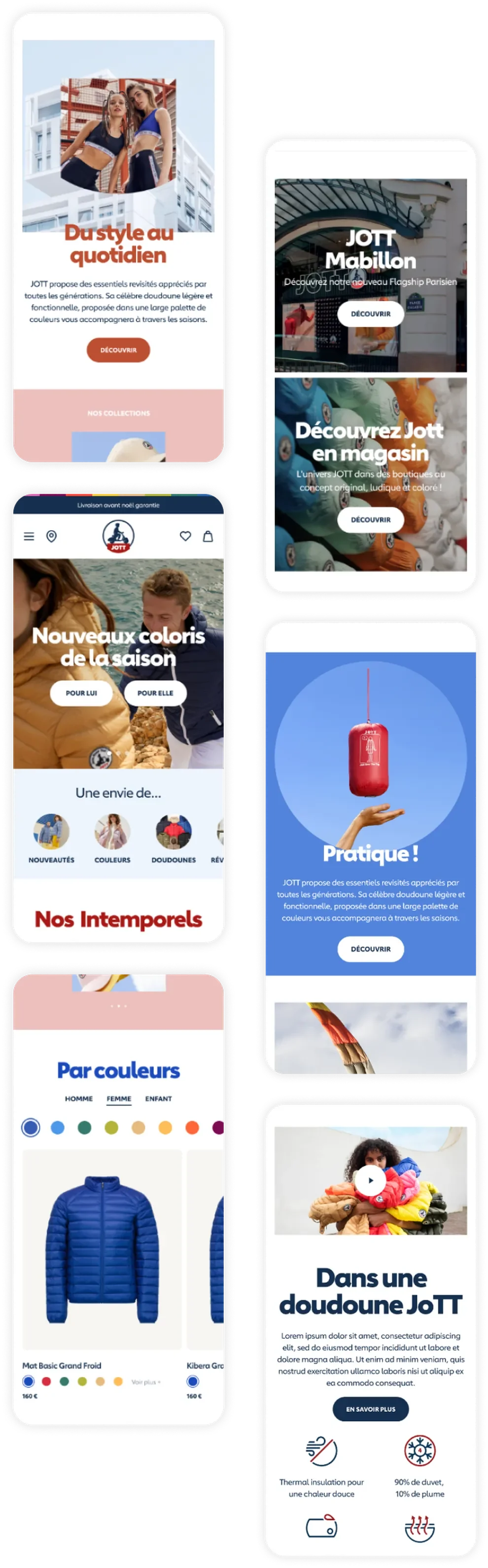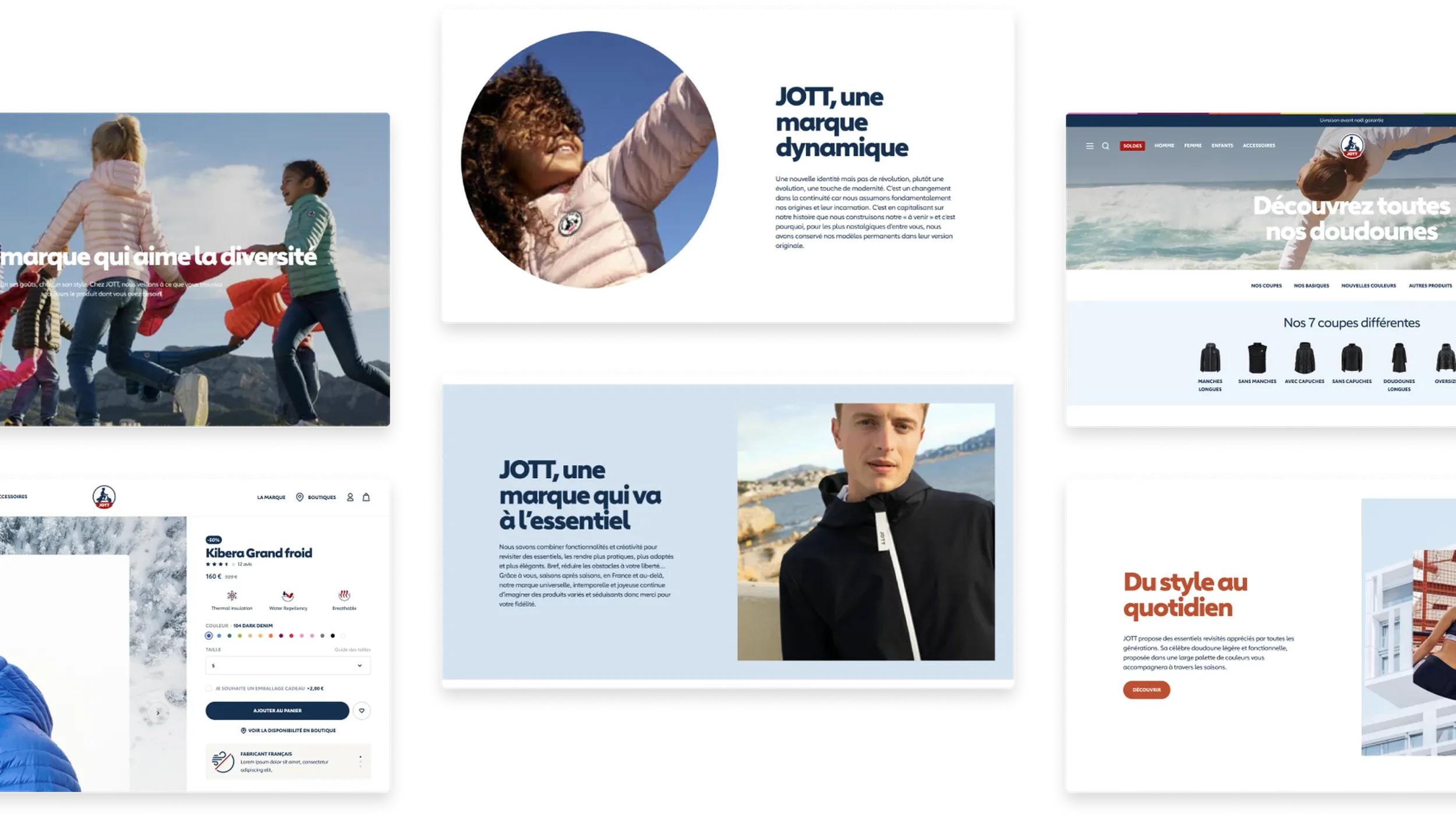 En tant que Directrice de clientèle, j’ai joué le rôle de porte-parole du client au sein de l’équipe projet. J’ai coordonné l’ensemble des intervenants (direction artistique, UX/UI, développement, production, SEO, CRO) afin d’assurer la cohérence entre la vision de la marque JOTT et l’exécution digitale.