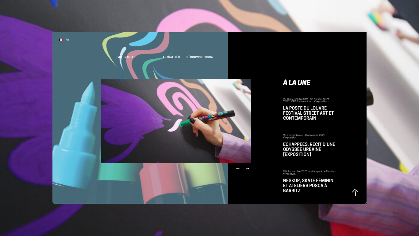 Contexte : Marque iconique reconnue dans l’univers du street art, du graff, de l’illustration et des loisirs créatifs, POSCA souhaitait se doter d’un site vitrine capable de présenter l’intégralité de sa gamme et de ses usages.