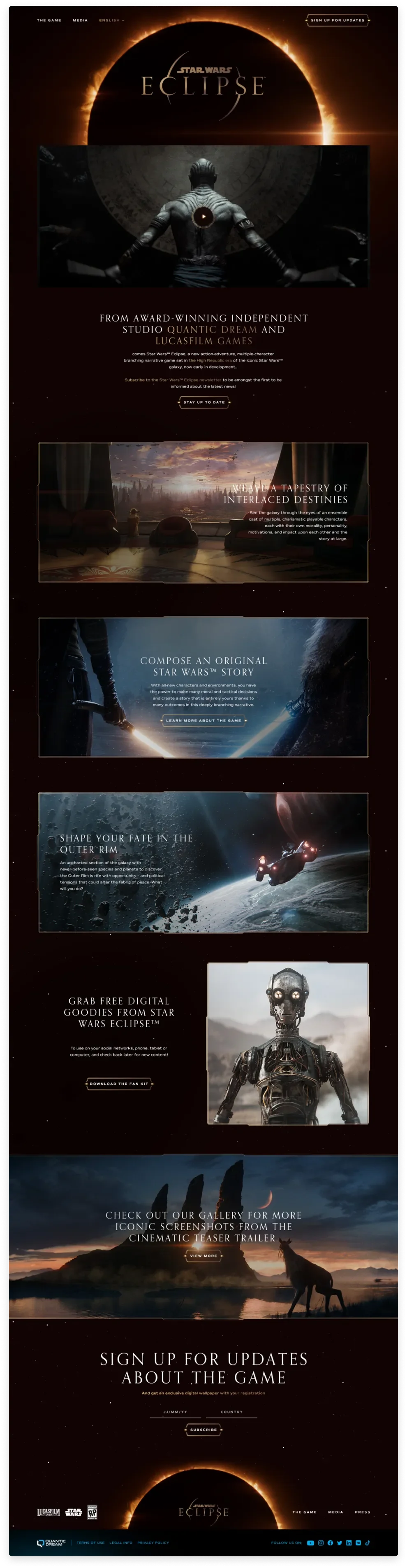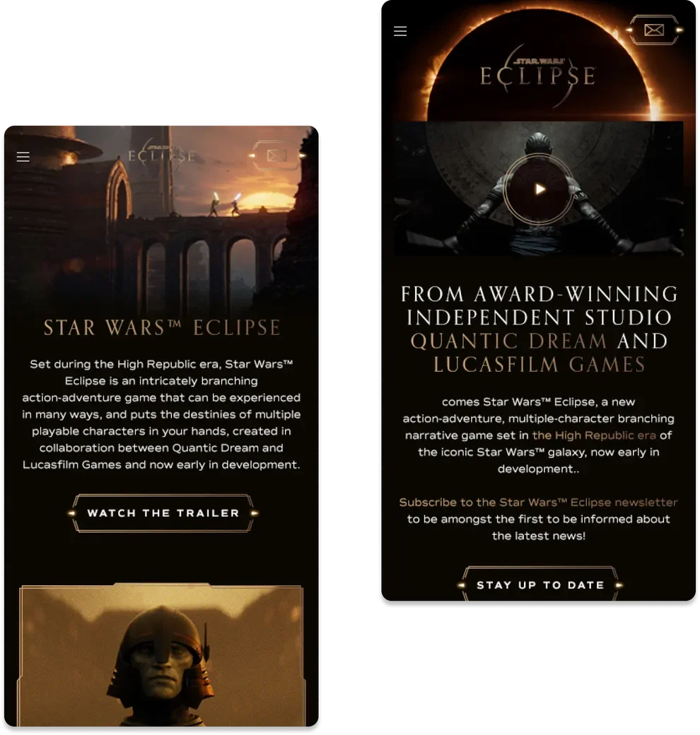 À l’occasion de l’annonce de son prochain grand projet, Star Wars Eclipse, le studio souhaitait créer un site immersif exclusif pour dévoiler les premières images du jeu et plonger les fans dans son univers cinématique et visuel.